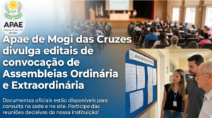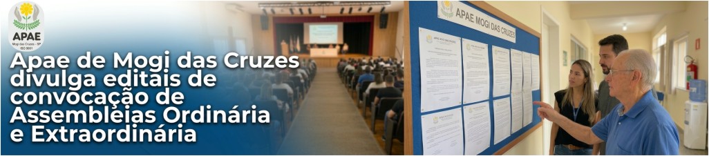 Saiba como você pode nos ajudar! Seja um Doador! Notícias Encerramento de ações pedagógicas reúne famílias e celebra valores no Núcleo Rural e Centro de Equoterapia Cerimônia de formatura da Educação Infantil celebra desenvolvimento e inclusão na APAE de Mogi Alunos da APAE de Mogi participam de visita ao consultório odontológico para reforçar autonomia e cuidados em saúde bucal APAE de Mogi das Cruzes conquista seis medalhas na 24ª Olimpíada Nacional das APAEs Entrega de presentes e almoço especial marcam celebração de fim de ano para alunos da APAE de Mogi APAE de Mogi encerra atividades do Serviço de Convivência com palestra, integração e celebração Encerramento do projeto Movimento é Vida celebra evolução dos participantes na APAE de Mogi das Cruzes APAE de Mogi participa de evento municipal em alusão ao Dia Internacional de Luta da Pessoa com Deficiência APAE de Mogi das Cruzes participa da 24ª Olimpíadas Nacionais das APAEs com dois atletas classificados na natação 1 2 3 … 26 Próximo » Blog 400 – Ser voluntário 400: Uma marca, um movimento, um futuro inteiro pela frente 399 – 2026: O ano em que o voluntariado vira protagonista (e talvez você também) 394 – Voluntariado: a força da inovação nas organizações sociais 392 – Quando o voluntariado deixa de ser um tapa-buraco 391 – A urgência da gestão profissional no voluntariado 389 – Voluntariado: a urgência de um compromisso coletivo 388 – Quando o voluntariado vira cilada Edital de convocação para eleição de diretoria executiva 387 – Investir em voluntariado é investir em capital humano 1 2 3 … 17 Próximo » Parceiros Fazer Doação Fazer Doação! Seja Voluntário