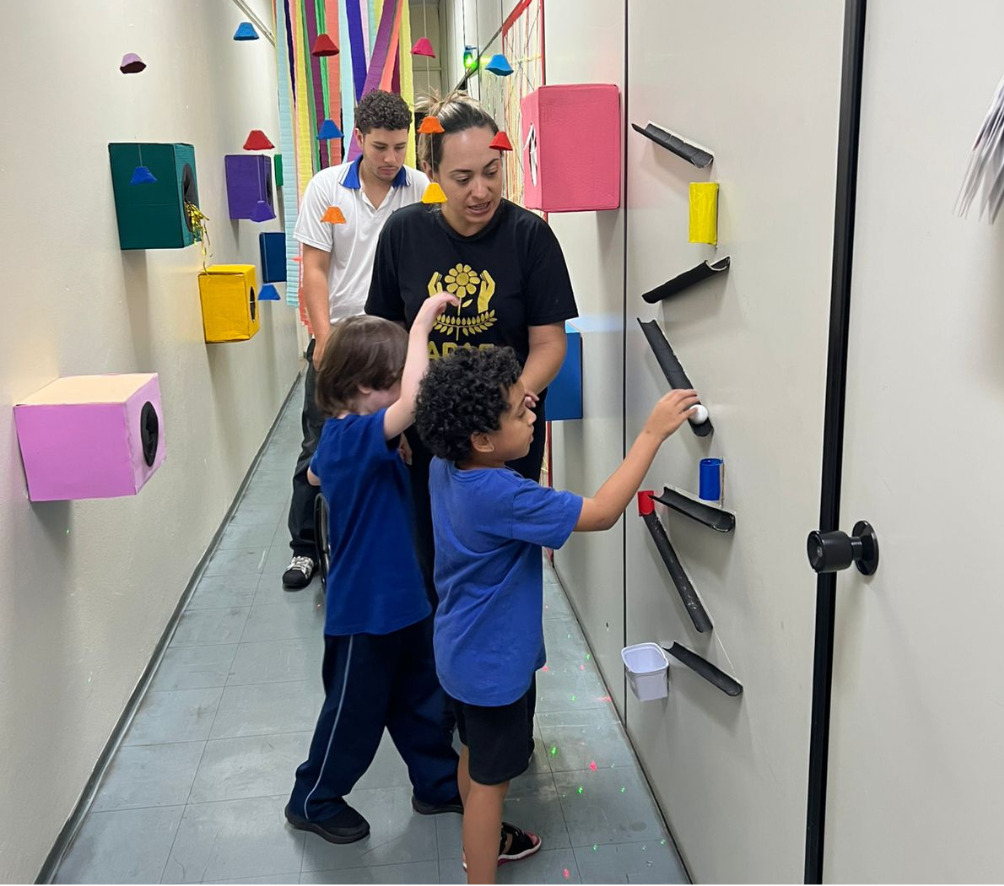 Um dos destaques foi o corredor sensorial, estruturado com estímulos visuais, táteis e sonoros, proporcionando aos alunos experiências voltadas à exploração dos sentidos, percepção corporal e desenvolvimento da curiosidade. As visitas ao espaço foram acompanhadas por sessões de cinema com curtas-metragens que abordam inclusão, empatia e respeito às diferenças.
