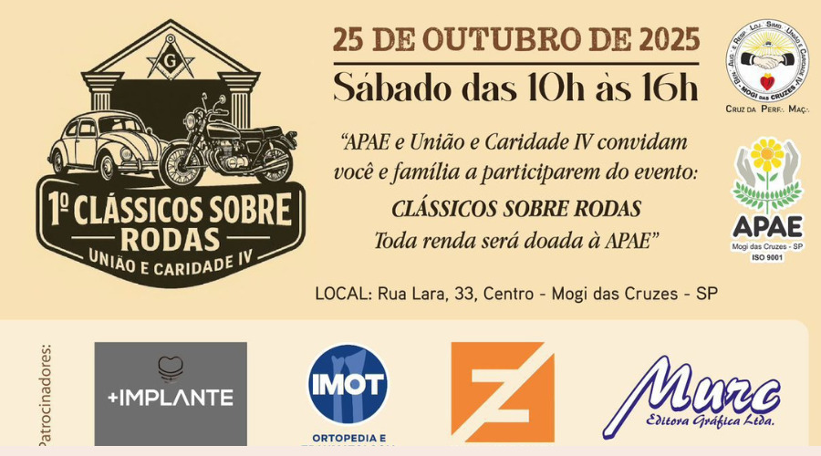 A solidariedade e o amor pelos veículos antigos vão se encontrar em Mogi das Cruzes no dia 25 de outubro, durante o 1º Clássicos Sobre Rodas – União e Caridade IV. O evento, promovido pela União e Caridade IV em parceria com a APAE de Mogi das Cruzes, tem como objetivo arrecadar fundos para fortalecer…