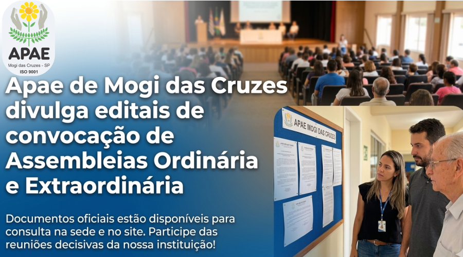 APAE de Mogi das Cruzes divulga editais de convocação de Assembleias Ordinária e Extraordinária