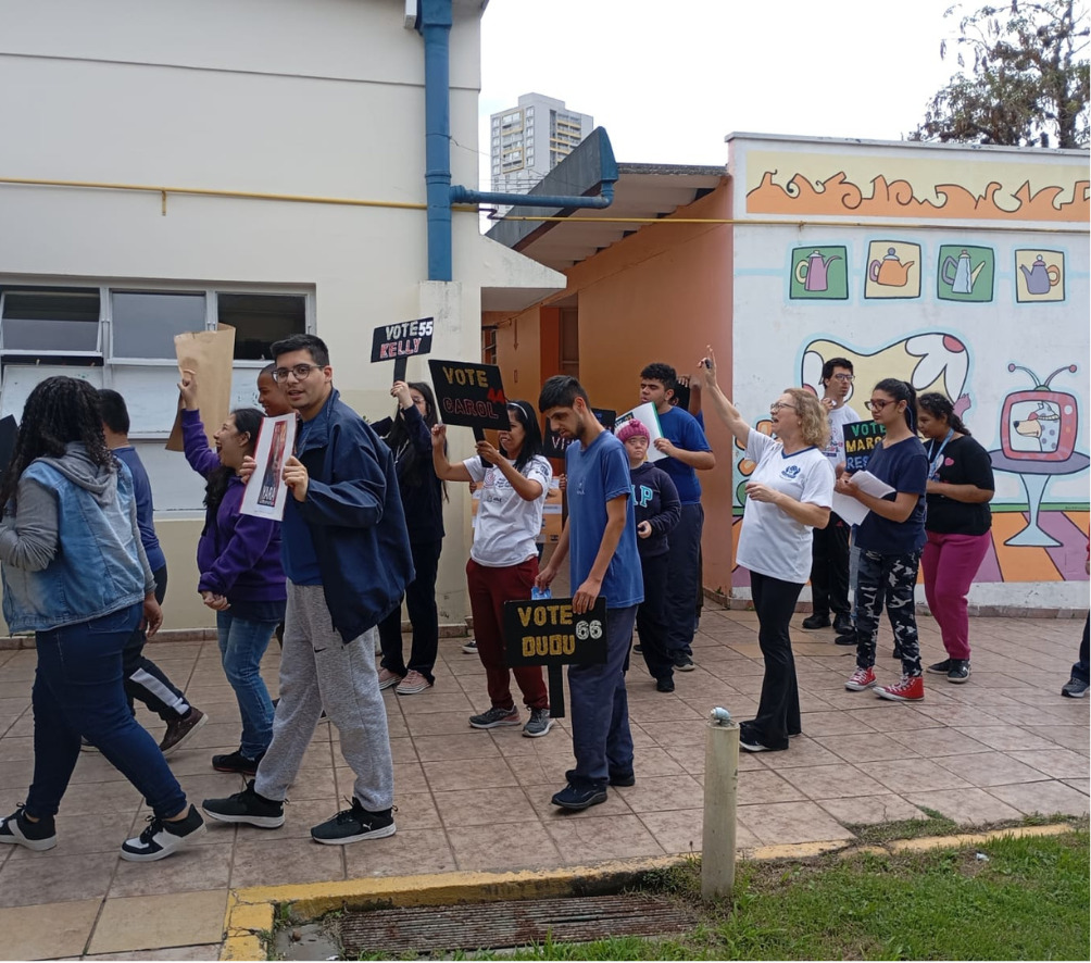 Participaram da eleição 11 alunos do socioeducacional, que se candidataram espontaneamente e desenvolveram suas próprias propostas. Ao longo da preparação, as turmas participaram de rodas de conversa sobre política, o papel de representantes e eleitores e o significado do cargo de autodefensor. O processo também contou com campanha eleitoral, com produção de cartazes, materiais visuais e jingles, ampliando a compreensão sobre comunicação, escuta e influência na escolha de líderes.