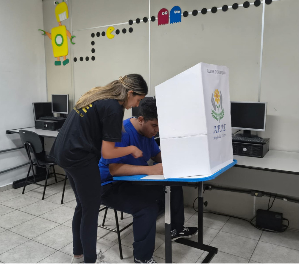 Na APAE, a escolha ocorre a cada três anos, por meio de votação entre os estudantes, garantindo uma vivência real de democracia no ambiente escolar.